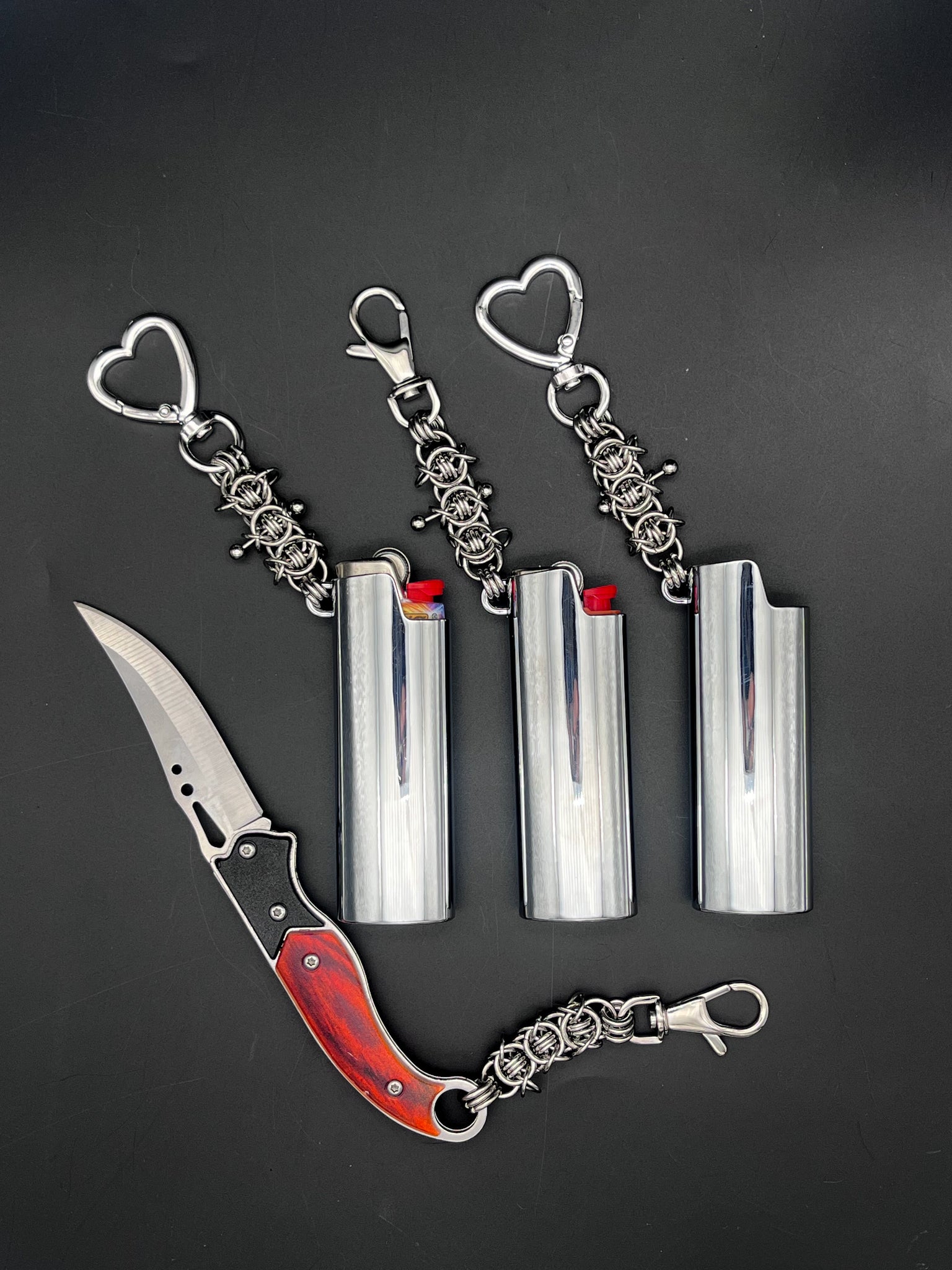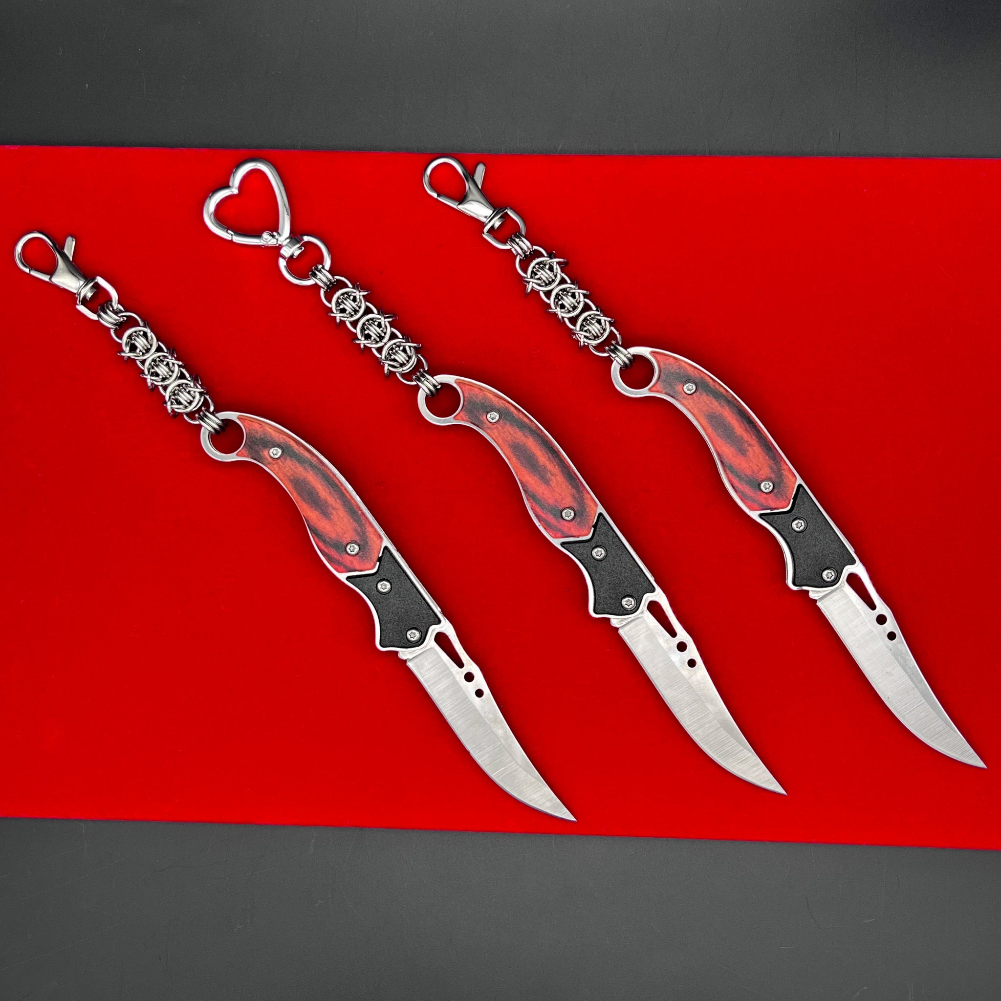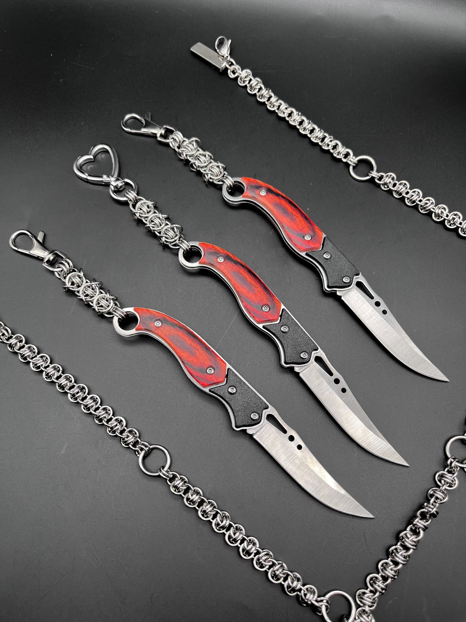 Manual folding knife keychain. Sharp blade made with stainless steel. Plain hook or plated heart hook available.